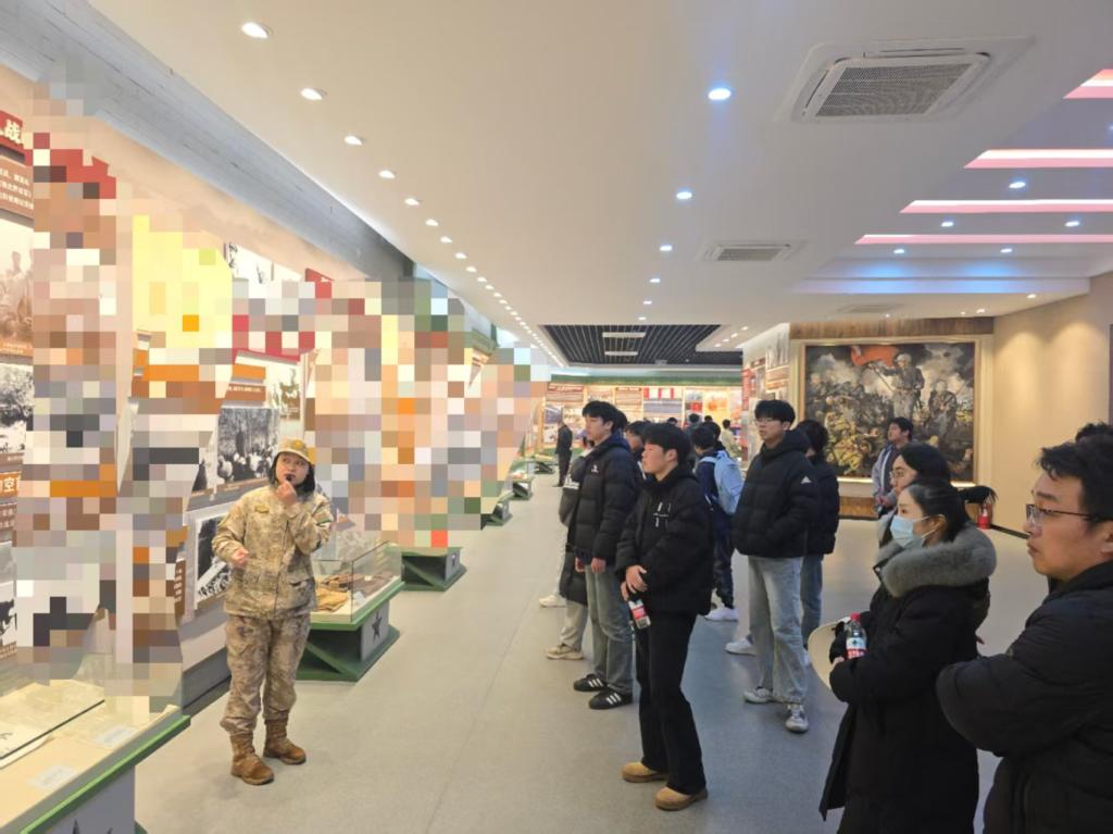 师生一行的首站,抵达部队师史陈列馆。推开馆门,一段段峥嵘岁月扑面而来。同学们放缓脚步,目光紧紧定格在记录部队发展历程的老照片上,轻轻端详着承载着牺牲奉献精神的旧枪械、老军装等实物展品,指尖掠过展柜玻璃,仿佛能触摸到前辈们浴血奋战的滚烫岁月。“原来这就是‘光荣传统’的重量,是一代代军人用青春和热血筑牢的信仰根基。”一名同学低声感慨,言语间满是崇敬。