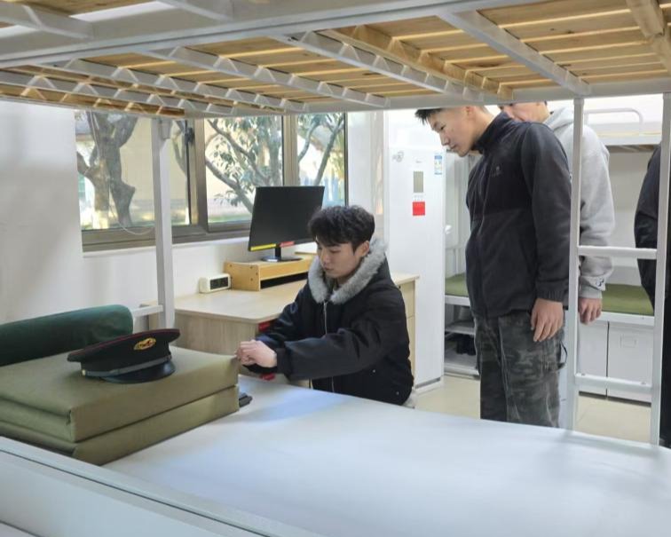 从历史的厚重中走出,队伍随即走进官兵营房。当棱角分明、如同“豆腐块”般的被子整齐排列,个人物品摆放得一丝不乱,连牙刷、毛巾都成排成线时,现场瞬间响起同学们的阵阵惊叹声。“原来军人的日常,不仅有训练场上的坚毅,更有生活里的严谨细致。”一名怀揣参军意愿的同学说,眼前的场景让他对军营生活的向往更加强烈。