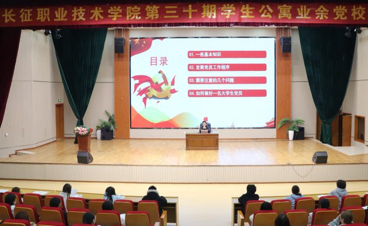 2026年3月22日晚,浙江长征职业技术学院第三十期学生公寓业余党校第二讲在第一报告厅开讲。学生处副处长翁文亮围绕“党员发展工作程序”主题,为全体学员授课。