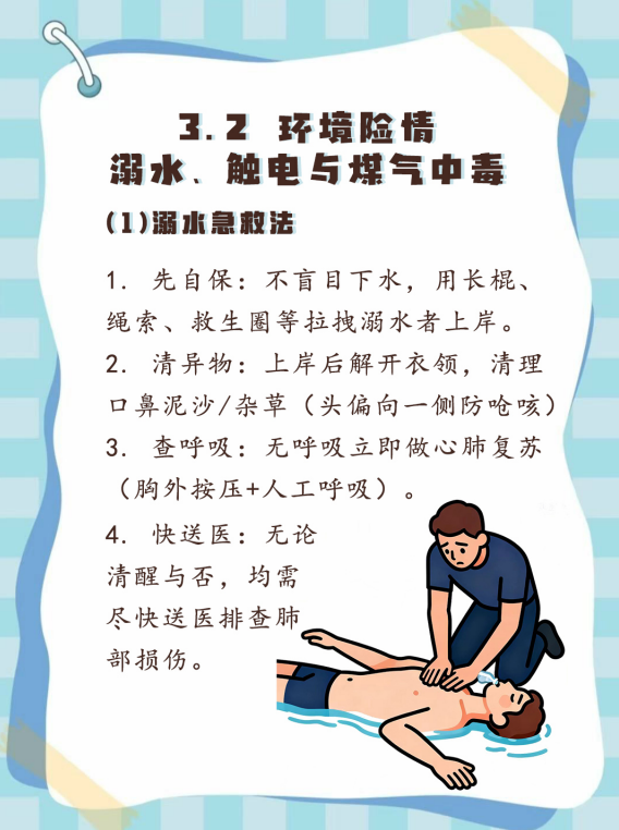 急救知识手册(九、环境险情——溺水、触电与煤气中毒急救法)
